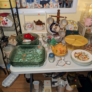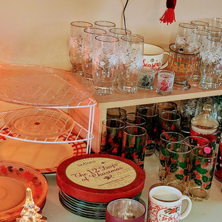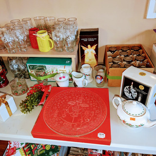 Xmas, crafting, Holiday, clothes, purses, glassware, brown ware, kitchen, jewelry, cleaning products, personal toiletries, wood items,